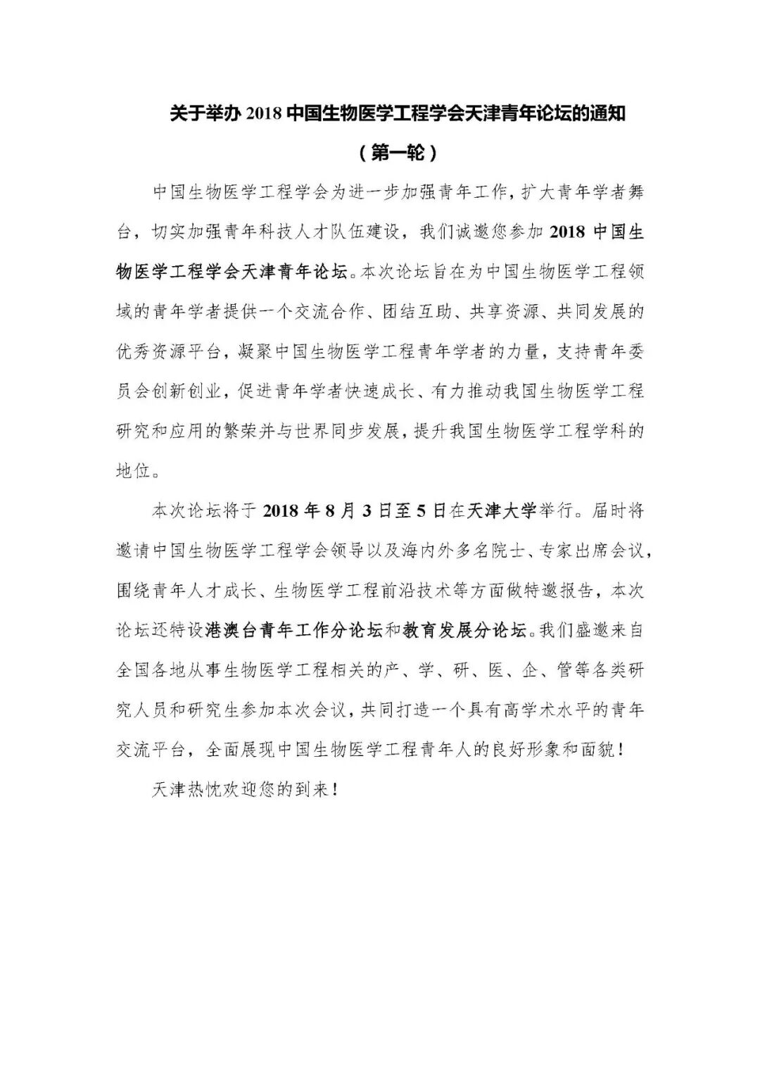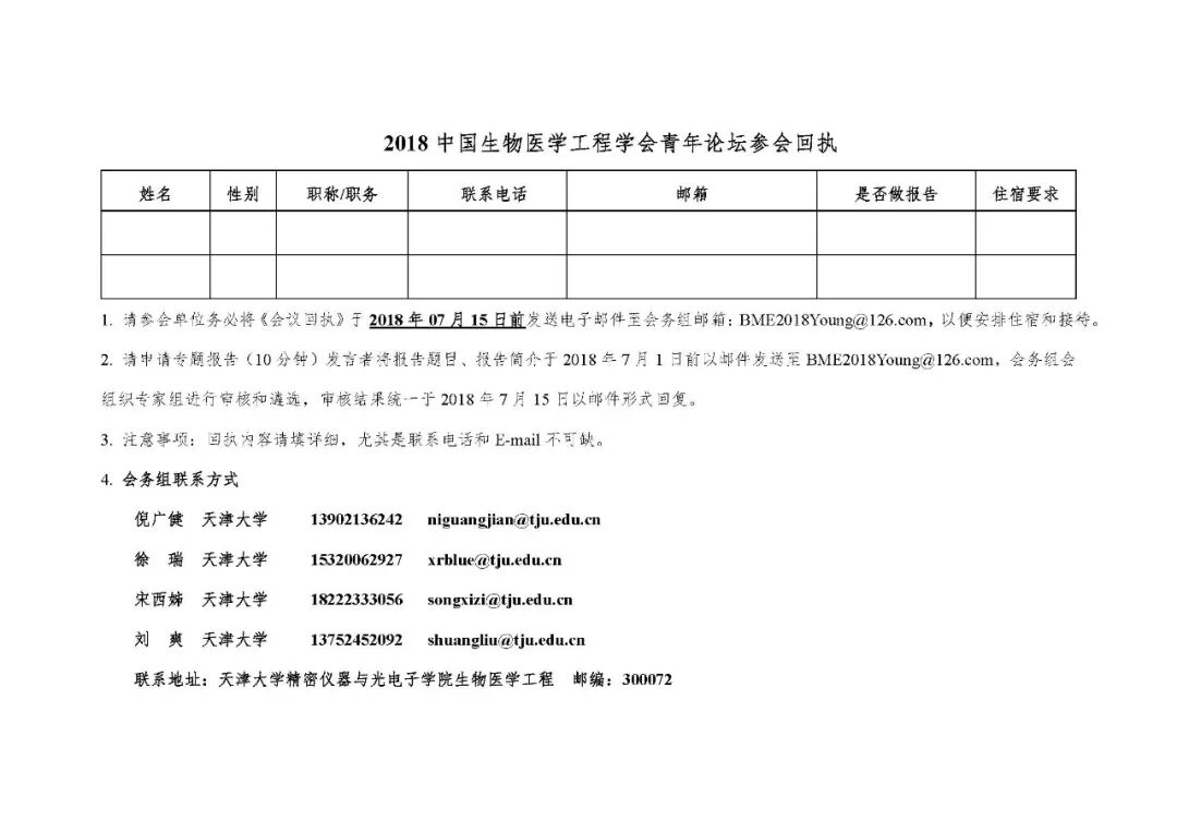 2018中国生物医学工程学会天津青年论坛会议通知